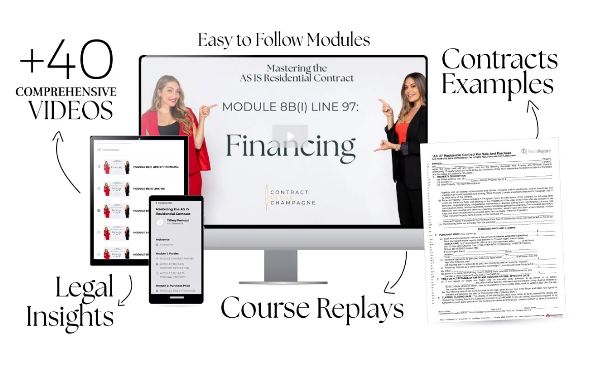 Taught by Tiffany Pantozzi, a top-producing Florida Realtor® and team leader, and Natalie Zagury, Esq., an active Florida real estate attorney. Together, they bring 20+ years of combined, hands-on experience closing, negotiating, and protecting real transactions in today’s market.