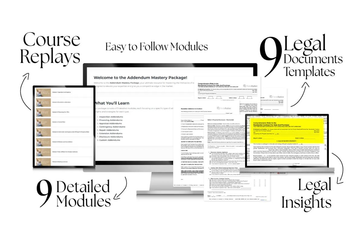 A deep dive into the most commonly used Florida addenda. Understand when to use them, why they matter, and how they affect negotiations, timelines, and deal protection in real-world scenarios.